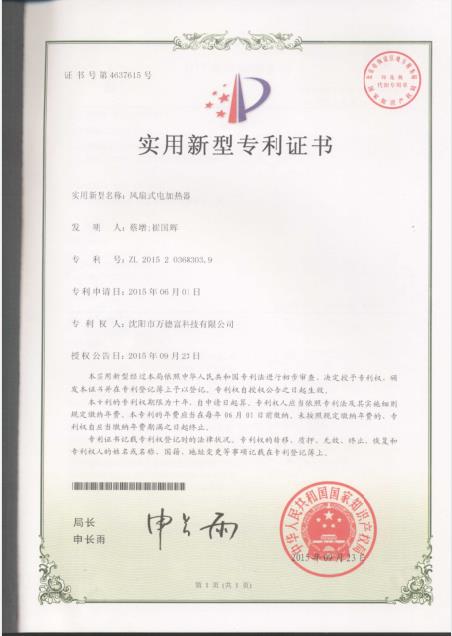 實用新型:風扇式電加熱器專利